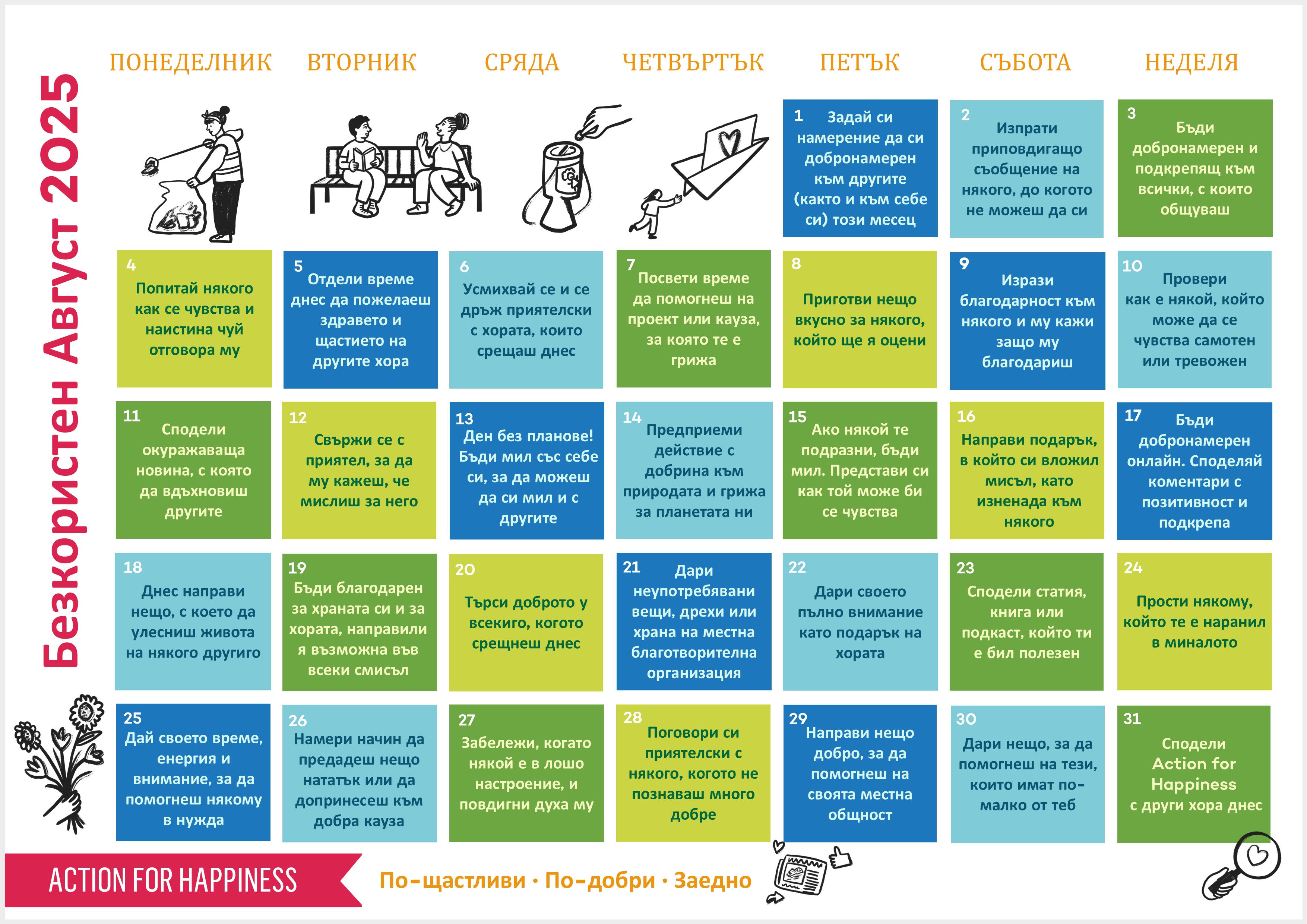 Do you want to help create a happier and kinder world? If so, please join our movement, add your pledge and we'll send you practical action ideas to make a difference. By choosing to Join, you trust Action for Happiness to take care of your personal information and agree to our Privacy Policy.