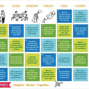 Each month, we launch an action calendar based on one of the 10 Keys, which provides simple daily actions anyone can take to create more happiness for themselves and in the world around them.